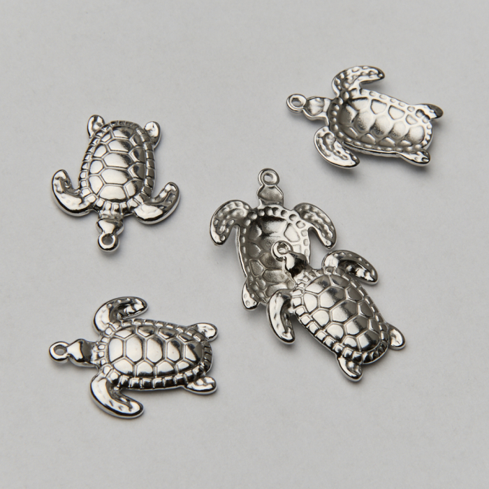 Zawieszka ze stali chirurgicznej żółwik w kolorze srebrnym 20mmTo starannie wykonany produkt ze stali chirurgicznej 316L, który dobrze prezentuje się w codziennym użytkowaniu. Stal chirurgiczna 316L jest ceniona za odporność na korozję i estetyczny wygląd w codziennym użytkowaniu.Zawieszka ze stali chirurgicznej 316L to dekoracyjny element, który nadaje biżuterii charakteru i pozwala tworzyć spersonalizowane projekty. Świetnie sprawdza się w naszyjnikach, bransoletkach, kolczykach oraz drobnych charmsach.Forma lub motyw