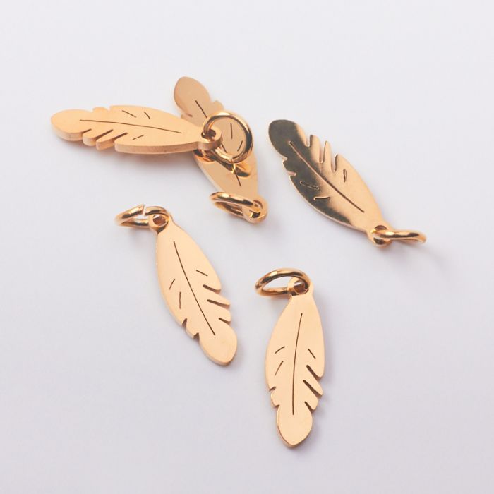 Zawieszka ze stali piórko w kolorze złotym 16mm