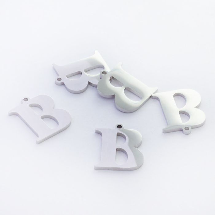 Zawieszka ze stali szlachetnej literka B w kolorze srebrnym 13,6mm