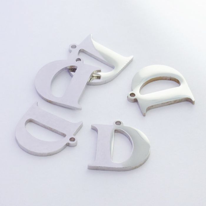 Zawieszka ze stali szlachetnej literka D w kolorze srebrnym 12,6mm