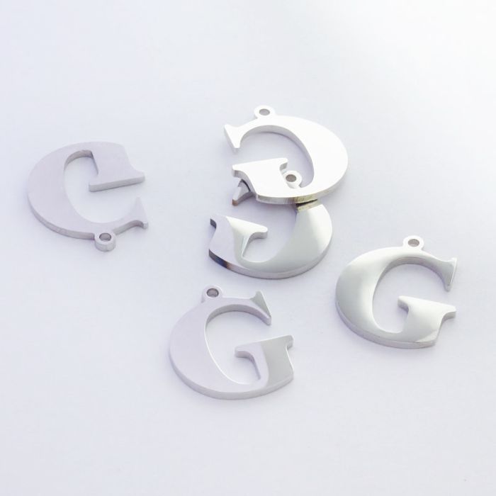 Zawieszka ze stali szlachetnej literka G w kolorze srebrnym 13,6mm
