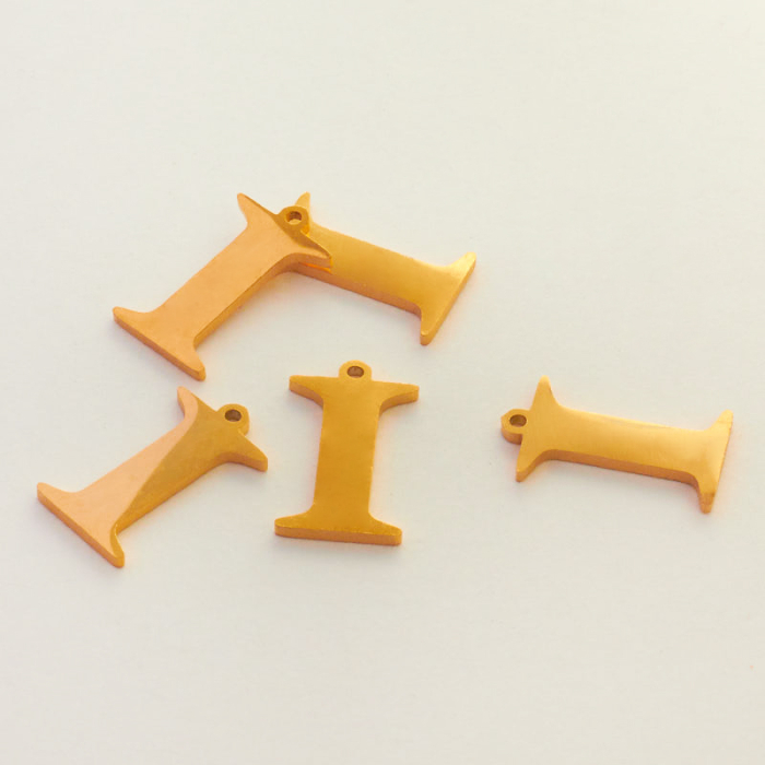 Zawieszka ze stali szlachetnej literka I w kolorze złotym 14,1mmTo estetyczny element biżuteryjny ze stali szlachetnej, chętnie wybierany do nowoczesnych projektów. Stal szlachetna jest ceniona za odporność na korozję i estetyczny wygląd w codziennym użytkowaniu.Zawieszka ze stali szlachetnej to dekoracyjny element, który nadaje biżuterii charakteru i pozwala tworzyć spersonalizowane projekty. Świetnie sprawdza się w naszyjnikach, bransoletkach, kolczykach oraz drobnych charmsach.Forma lub motyw