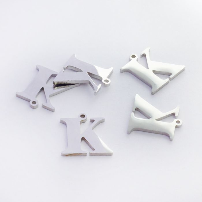 Zawieszka ze stali szlachetnej literka K w kolorze srebrnym 12,6mm