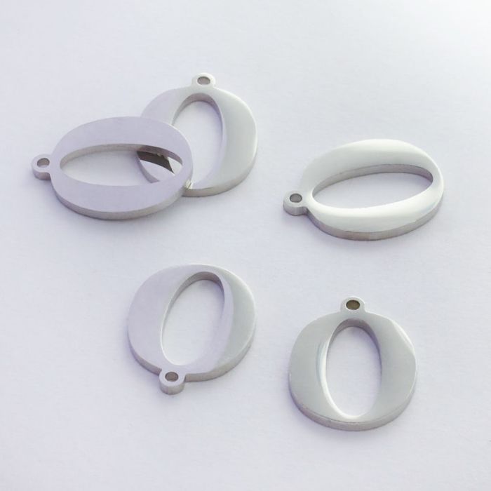 Zawieszka ze stali szlachetnej literka O w kolorze srebrnym 13,7mm