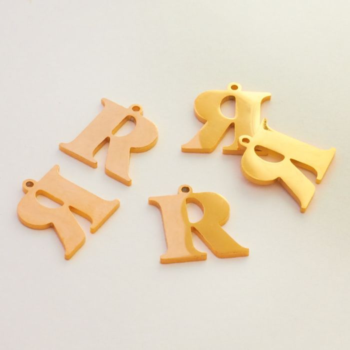 Zawieszka ze stali szlachetnej literka R w kolorze złotym 14,5mm