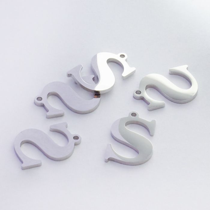 Zawieszka ze stali szlachetnej literka S w kolorze srebrnym 13,4mm