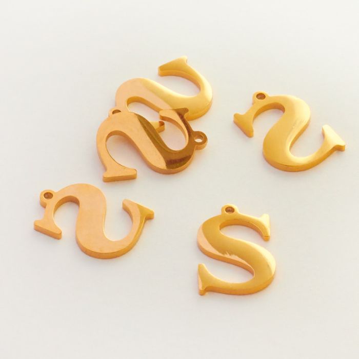 Zawieszka ze stali szlachetnej literka S w kolorze złotym 17mm
