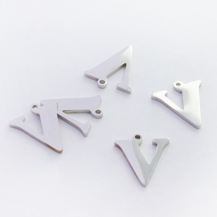 Zawieszka ze stali szlachetnej literka V w kolorze srebrnym 13,5mm