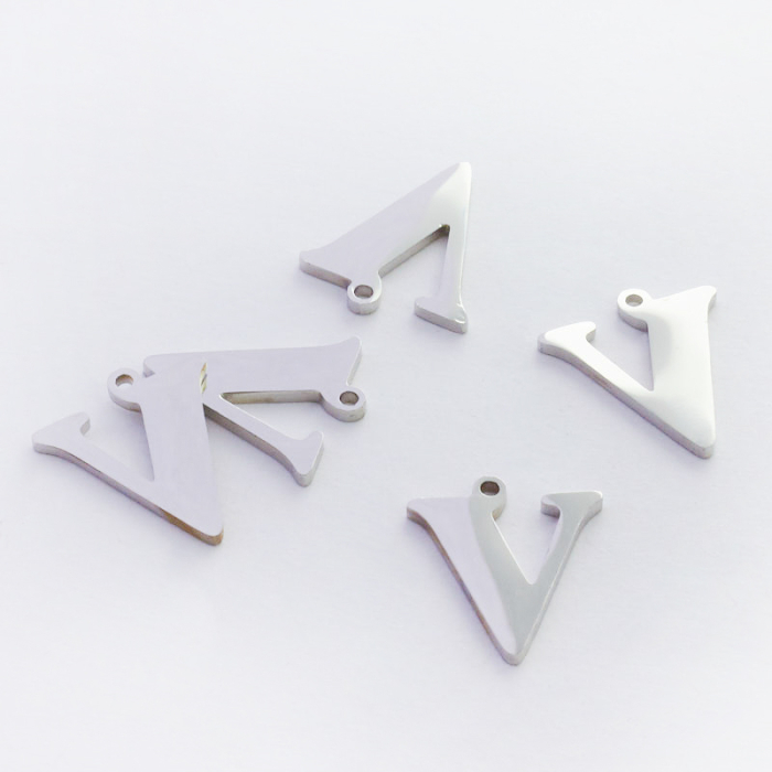Zawieszka ze stali szlachetnej literka V w kolorze srebrnym 13,5mmTo starannie wykonany produkt ze stali chirurgicznej 316L, który dobrze prezentuje się w codziennym użytkowaniu. To materiał chętnie wybierany do biżuterii handmade ze względu na trwałość, estetykę i wygodę użytkowania.Zawieszka ze stali chirurgicznej 316L to dekoracyjny element, który nadaje biżuterii charakteru i pozwala tworzyć spersonalizowane projekty. Świetnie sprawdza się w naszyjnikach, bransoletkach, kolczykach oraz drobnych charmsach.Forma lub motyw