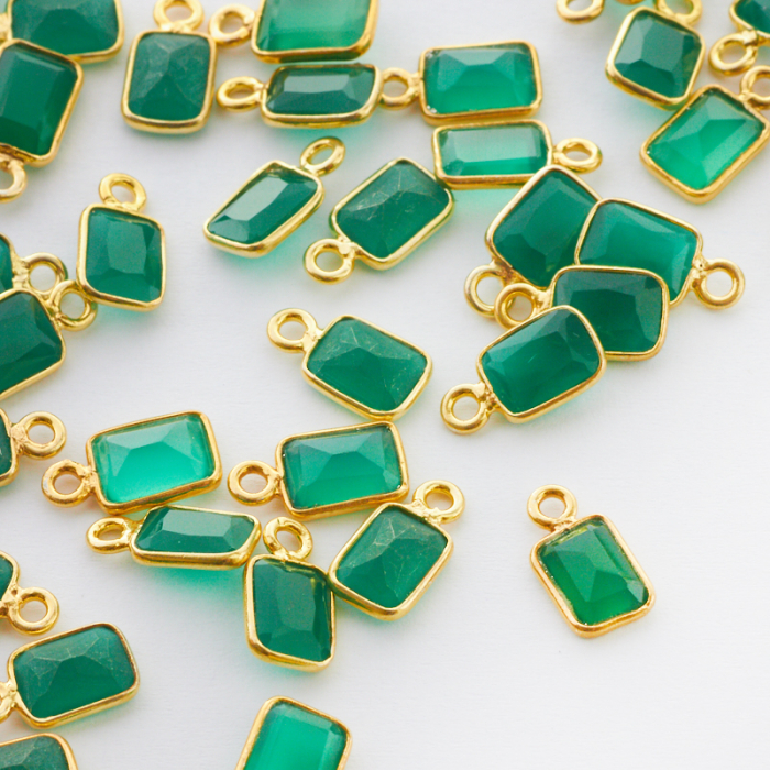 Zawieszka zielony onyks fasetowany w okuciu pozłacanym AG925 7x5mm