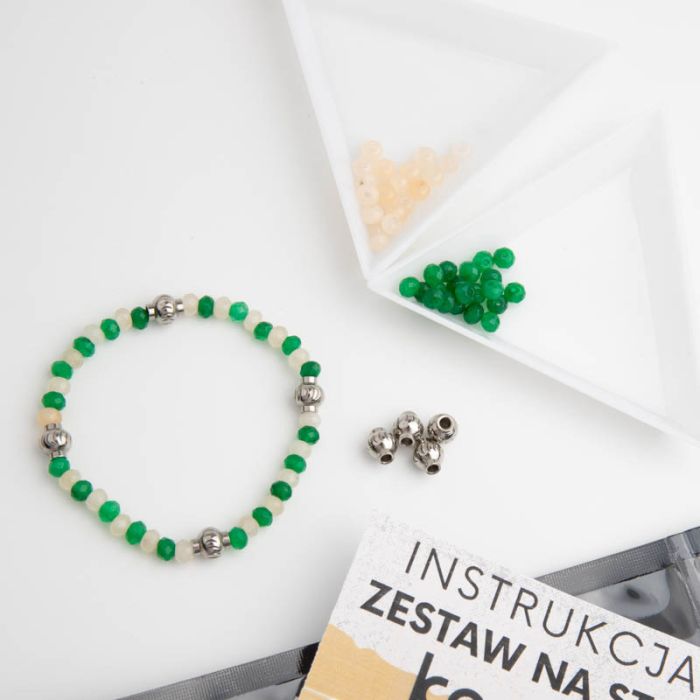 UWAGA!Kupując produkt nie otrzymasz gotowej biżuterii, a pakiet produktów do samodzielnego jej wykonania.*Uwaga!Produkt przeznaczony do wykonywania rękodzieła w tym biżuterii i innych ozdób. Produkt nie jest przeznaczony dla dzieci i zwierząt. Produkt nie jest przeznaczony do spożycia. Podczas używania produktu zalecamy stosowanie sprzętu ochronnego np. okularów ochronnych, rękawic. Produkt należy przechowywać poza zasięgiem dzieci oraz zwierząt domowych, a także stosować zgodnie z ich przeznaczeniem. Małe elementy drobne części stanowią zagrożenie uduszenia w przypadku połknięcia.