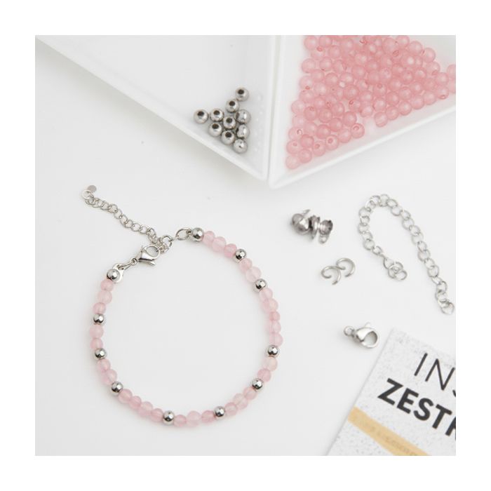 Zestaw do samodzielnego wykonania bransoletki na lince japońskiej, dodatki ze stali chirurgicznej w kolorze srebrnym