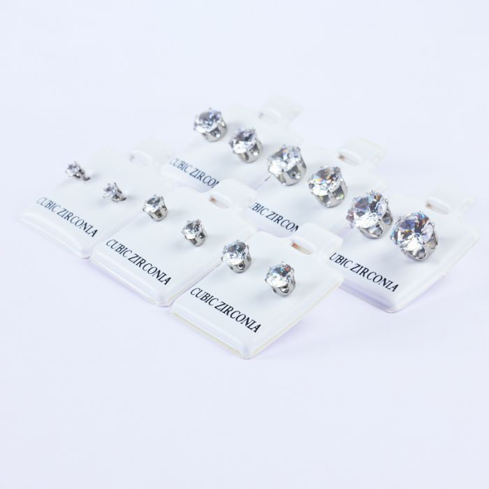 Zestaw kolczyków ze stali chirurgicznej z cyrkonią okrągłe ( 6 rozmiarów) w kolorze srebrnym 3-8mm