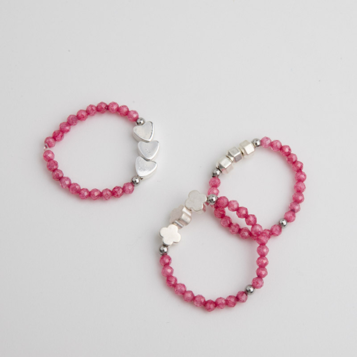 Zestaw pierścionków na gumce z cyrkoniami i hematytem