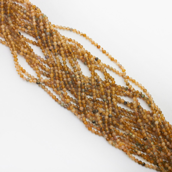 Bardzo drobne kamienie naturalne wykonane labradorytu. Są w kształcie kulki fasetowanej. Dominującym kolorem jest zielony, w różnych jego odcieniach. Kamienie posiadają przebarwienia. *Ponieważ są to kamienie naturalne mogą się nieznacznie różnić od siebie rozmiarem.*Rozmiar podany w nazwie produktu jest wartością orientacyjną. Charakterystyka: