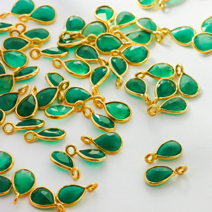 Zielony onyks zawieszka łezka w okuciu AG925 6mm