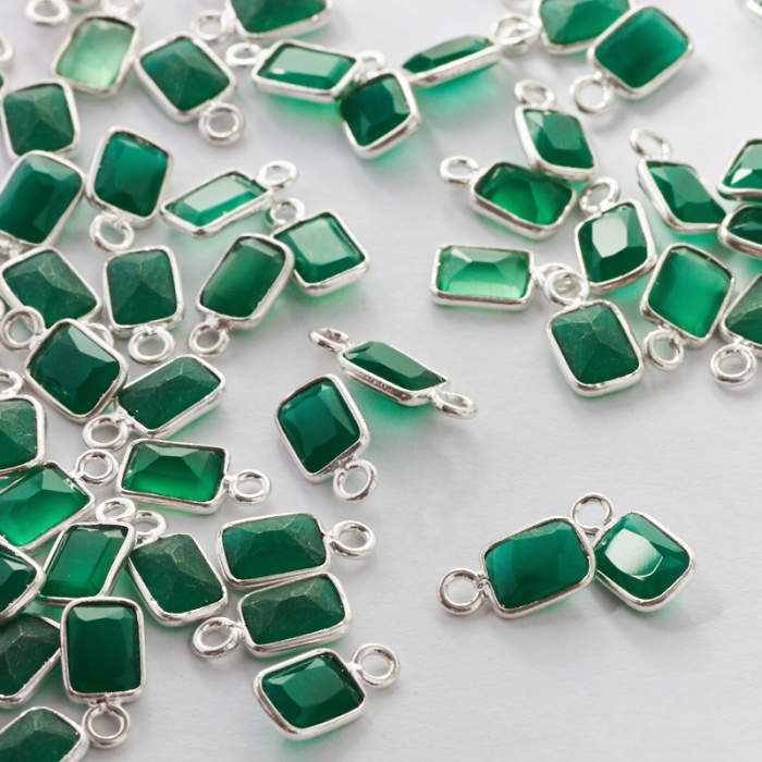 Zielony onyks zawieszka prostokąt w okuciu AG925 6mm