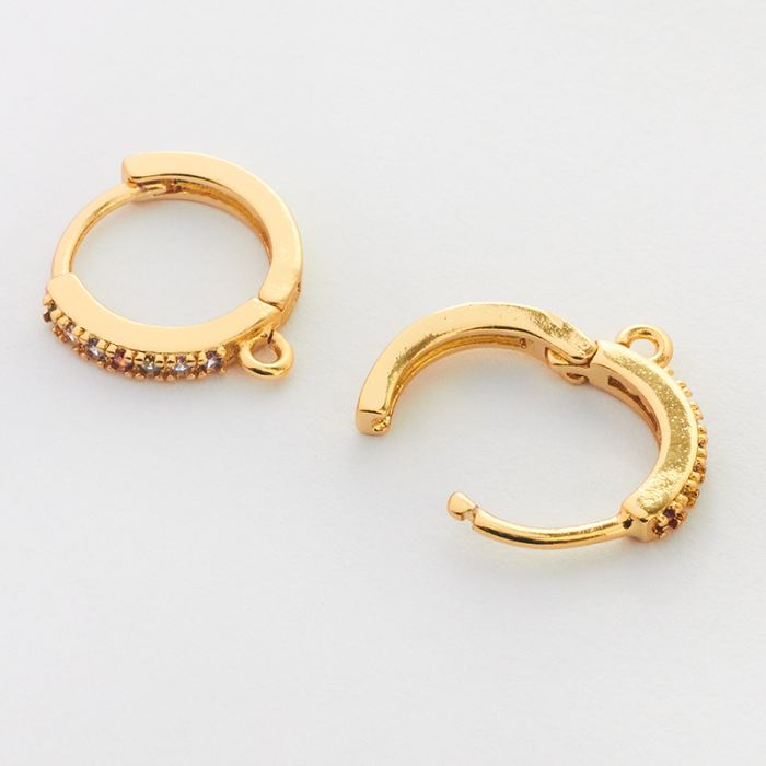Złocone bigle angielskie z cyrkoniami multikolor do podwieszania 13mm