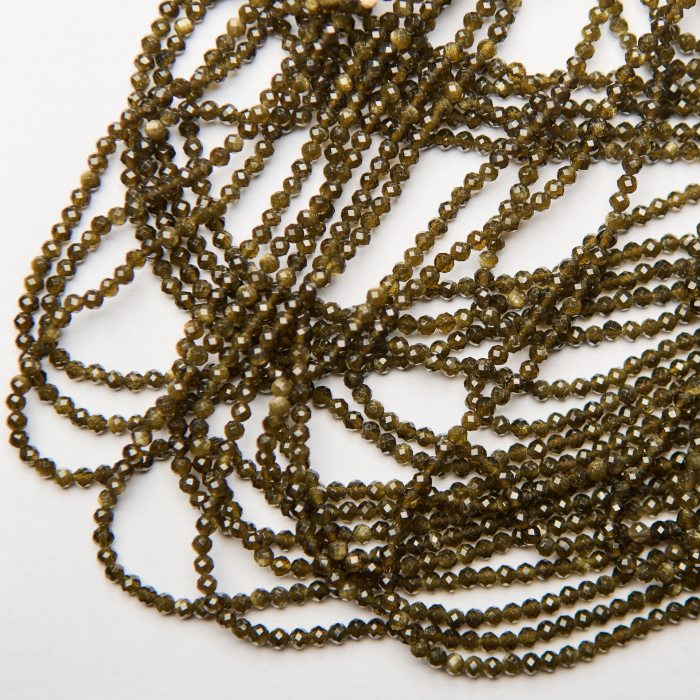 Złoty obsydian kulka fasetowana 3mm - na sznurze
