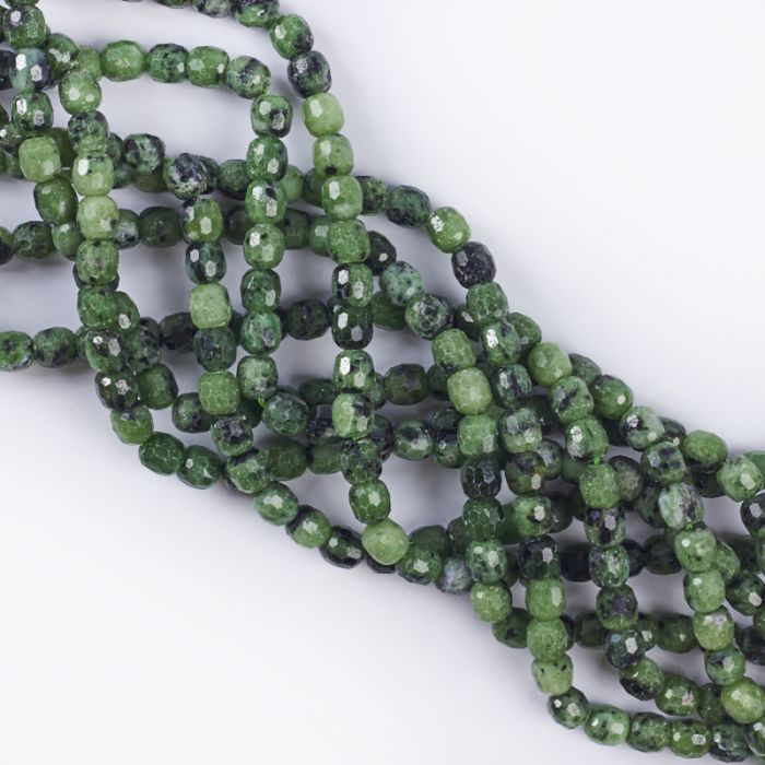 Zoistyt z rubinem oliwka fasetowana 5,5x6mm