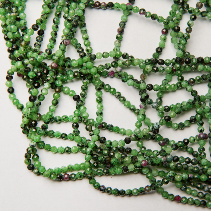 Zoisyt z rubinem kulka fasetowana 3mm - na sznurze