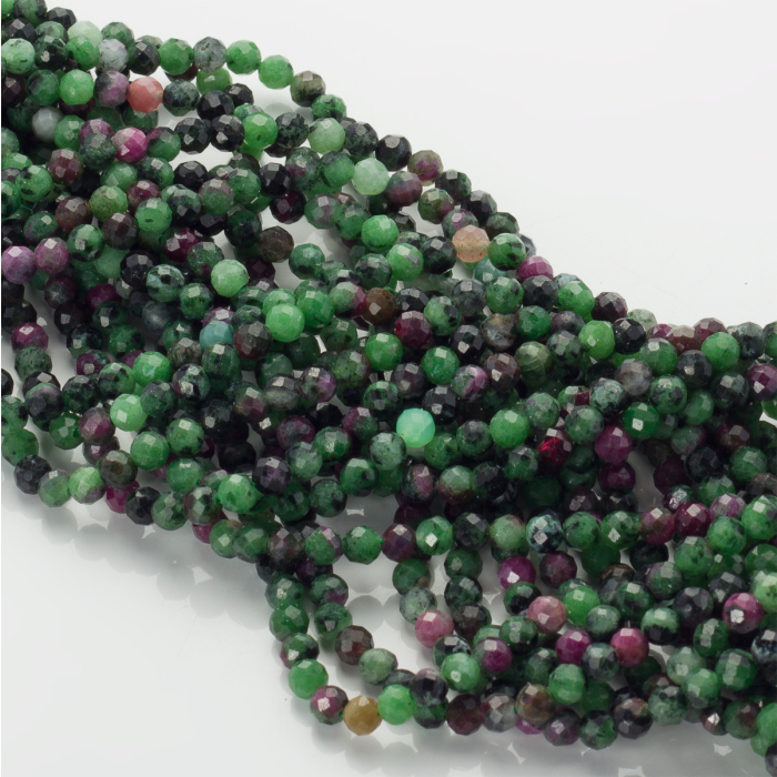 Zoisyt z rubinem kulka fasetowana zielona 4.5mm