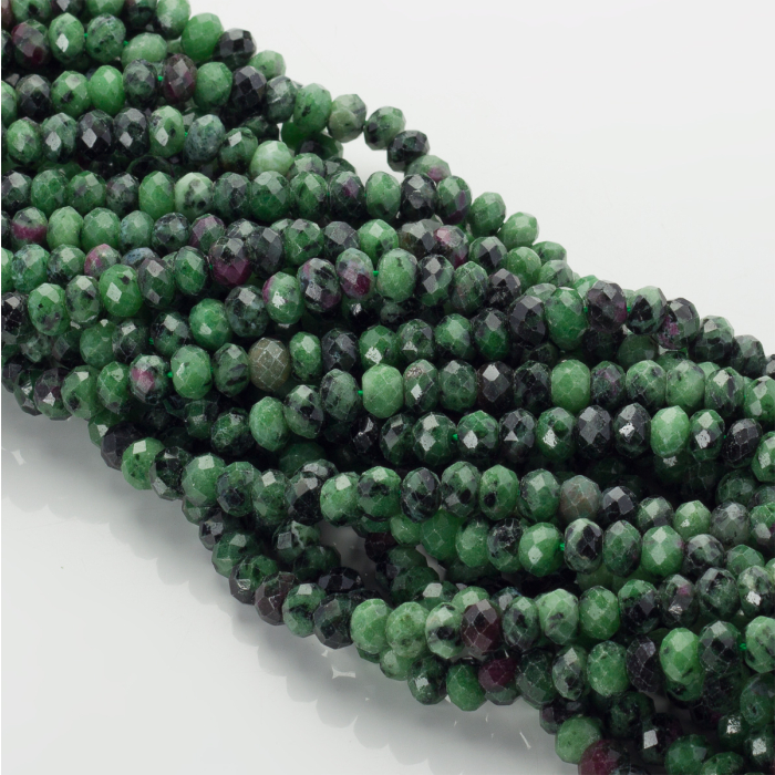 Zoisyt z rubinem oponka fasetowana zielona 6x8mm