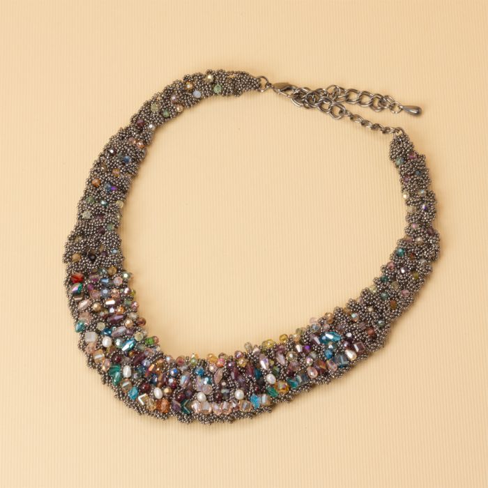 Kolia z drobnych łańcuszków z kryształkami 50cm