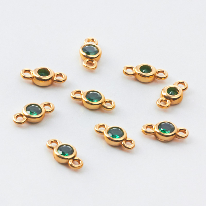 Srebrny łącznik oczko z zieloną cyrkonią AG925 8mm